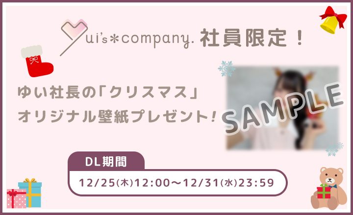 【 Yui’s*company. 】Yui’s*company.社員限定!ゆい社長の「クリスマス」オリジナル壁紙をプレゼント!