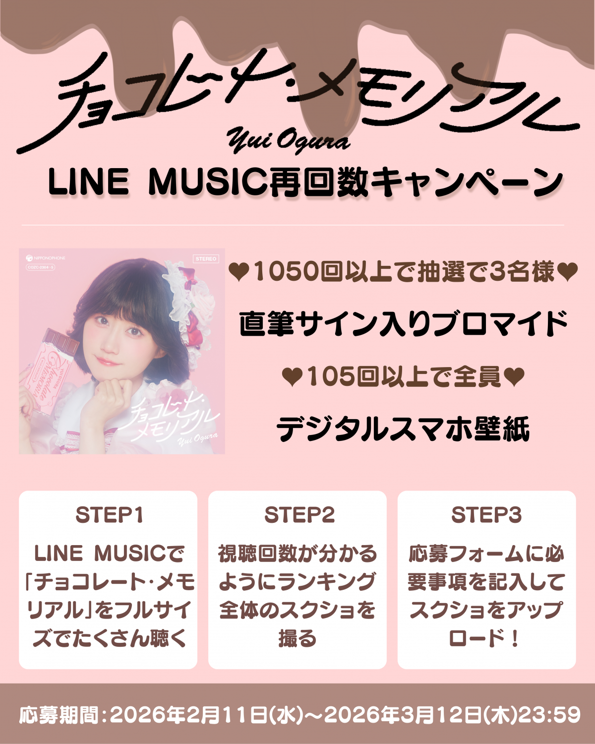 (1) 2026年3月11日(水)23:59までの期間中、「チョコレート・メモリアル」を《LINE MUSIC》でたくさん聴く。