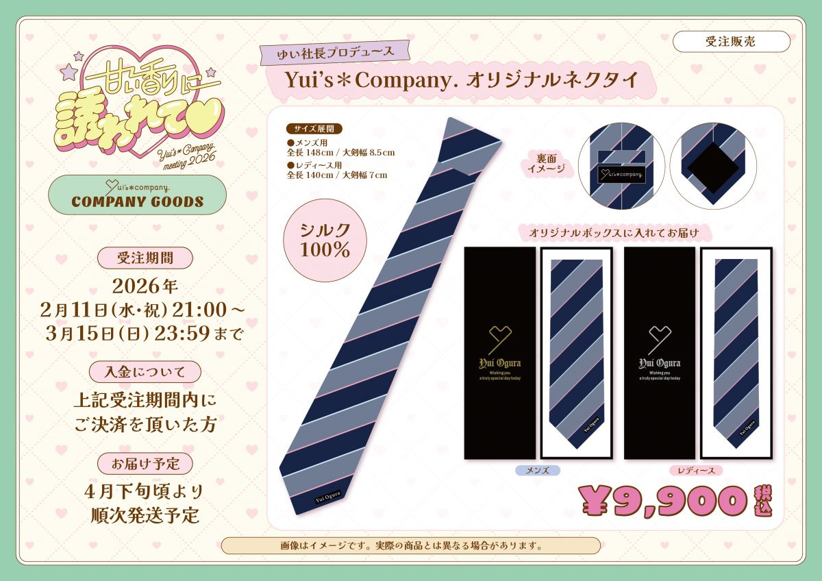【 Yui’s*company. 】FC会員限定「【ゆい社長プロデュース】Yui’s*Company. オリジナルネクタイ」の受注販売が決定!