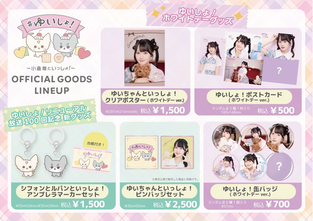 【 GOODS 】「『#ゆいしょ!〜小倉 唯といっしょ!〜』公開録音 祝♡100回記念」≪愛知公演≫イベント記念グッズのラインナップを公開!