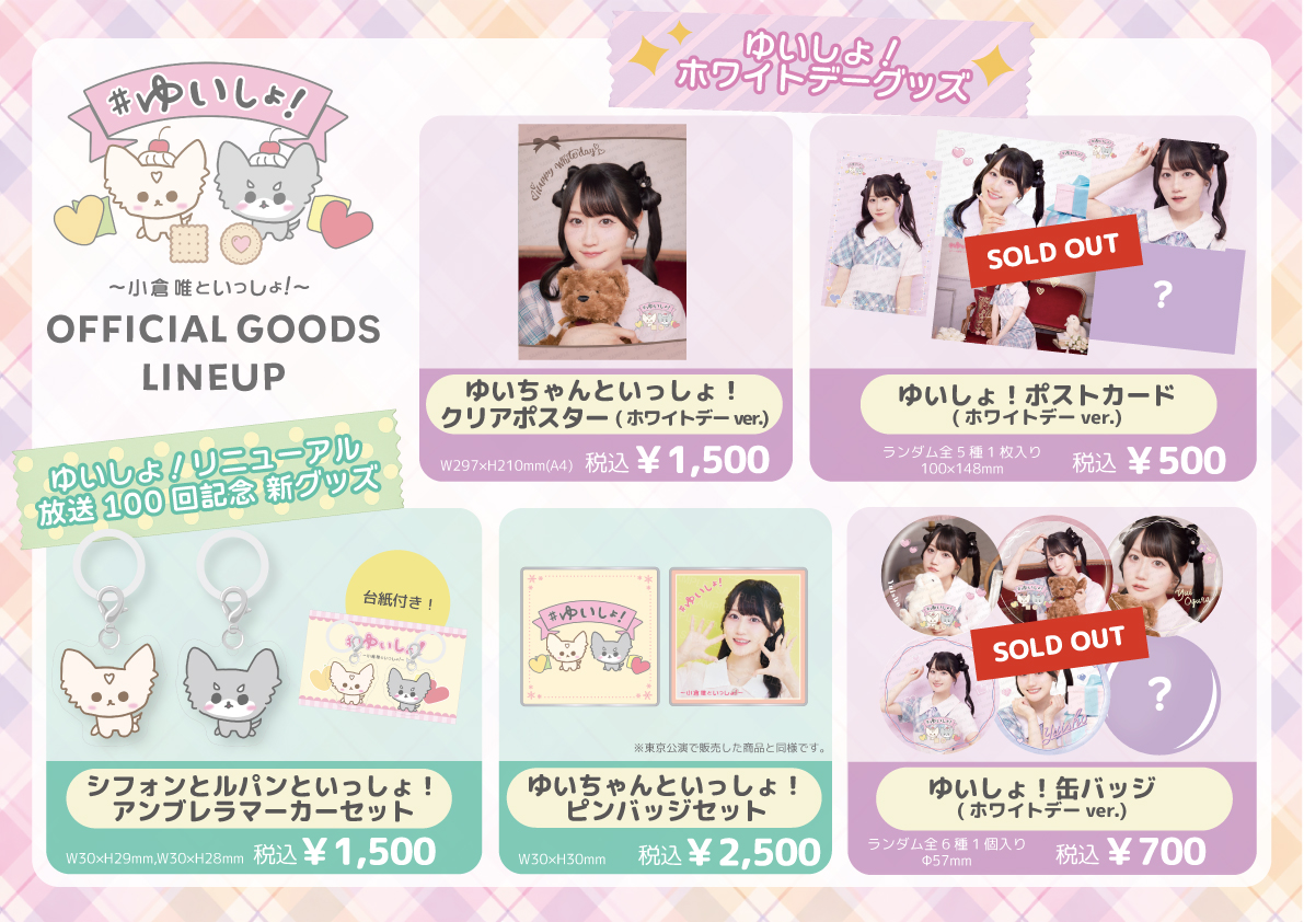 【 EVENT 】「『#ゆいしょ!〜小倉 唯といっしょ!〜』公開録音 祝♡100回記念」≪愛知公演≫グッズ事後通販のご案内